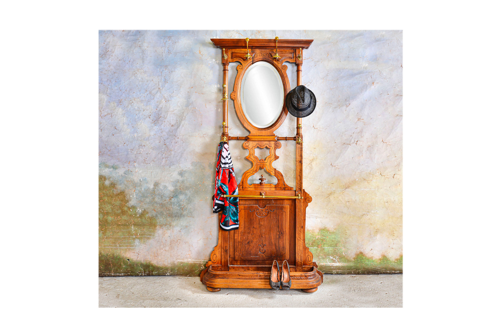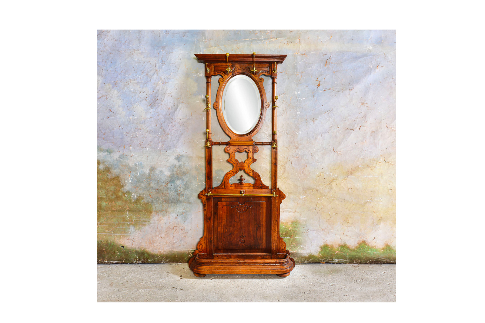 Wood and metal vestiaire, centered on a mirror 200 x 101 cm Circa 1900
