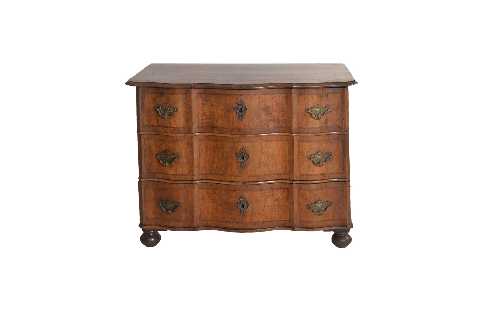Curved chest of drawers in walnut. German, CIRCA 1780