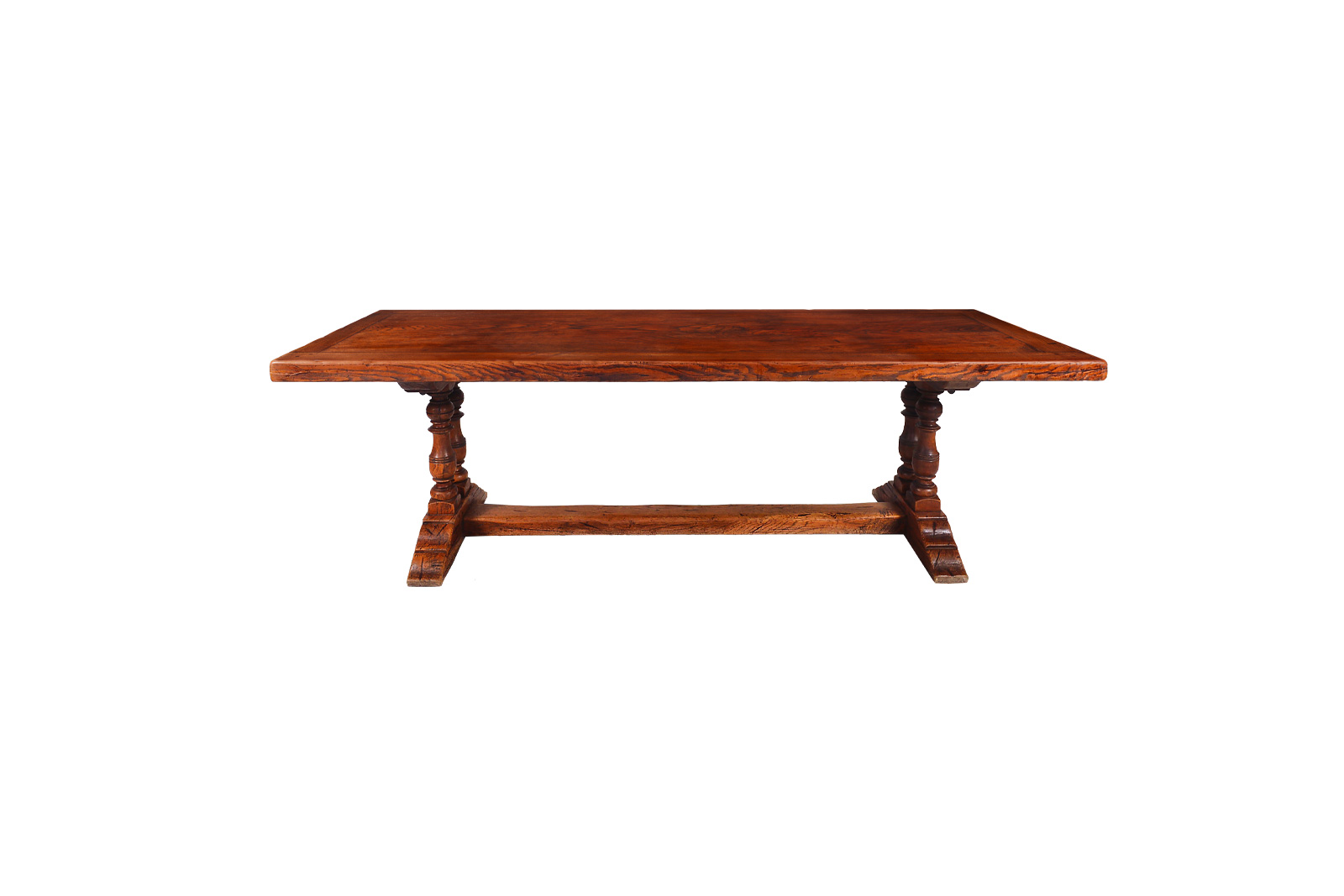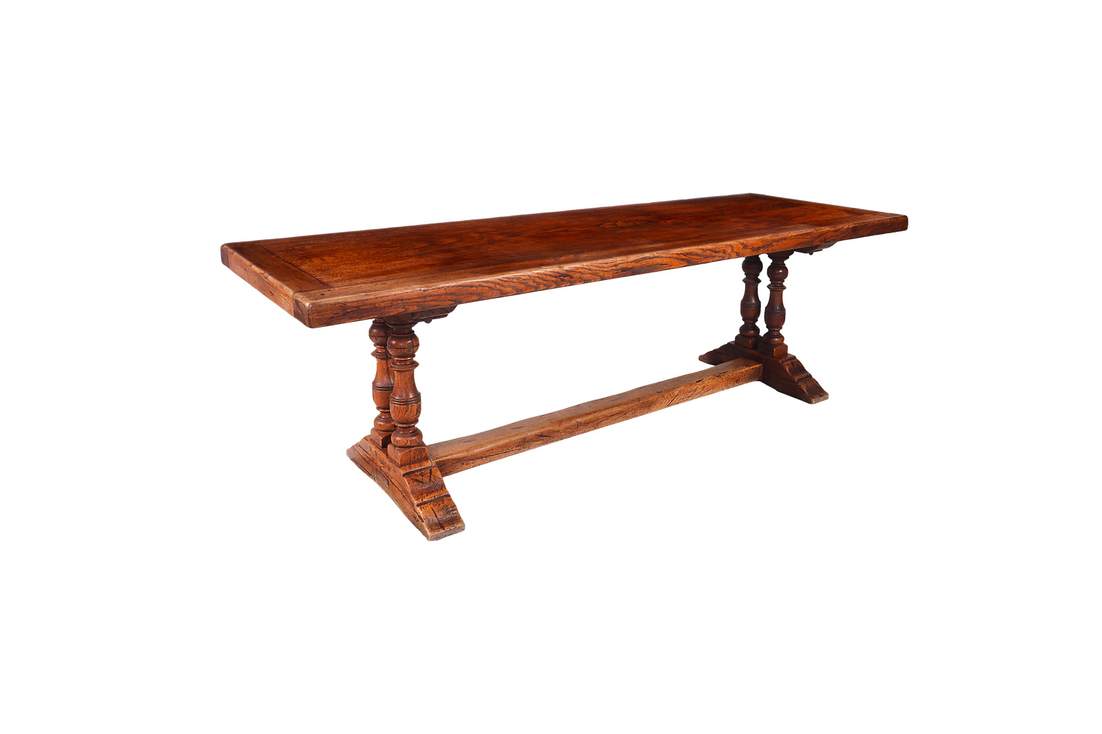 Monastery table With a large rectangular top resting on four Baluster legs joined by a brace Circa 1900 75 x 245 x 85 cm – 29.52 x 96.45 x 33.46 inches