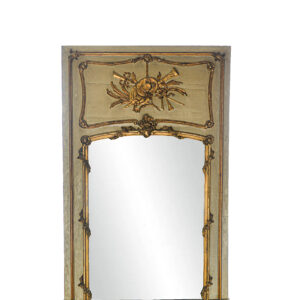 Mirror in gold composition with latticework decoration, The uprights with cut sides adorned with garlands of foliage H: 123cm, W: 84cm, D: 14cm. Circa 1950